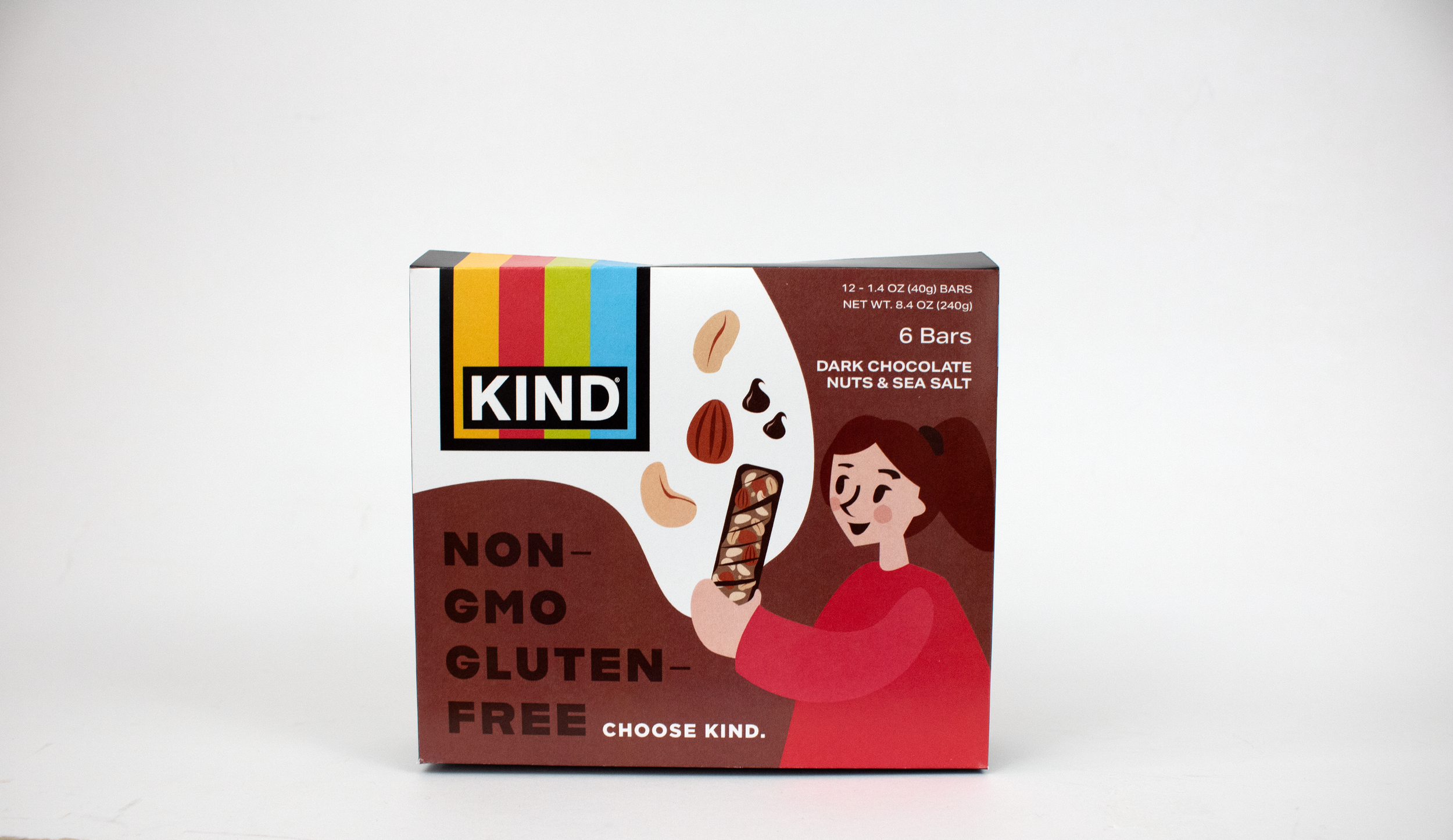 The packaging uses a rich brown instead of the current vibrant teal used for this flavor to give a more natural feel and match the bar flavor. KIND’s bright brand colors were utilized in combination with natural earth tones.
