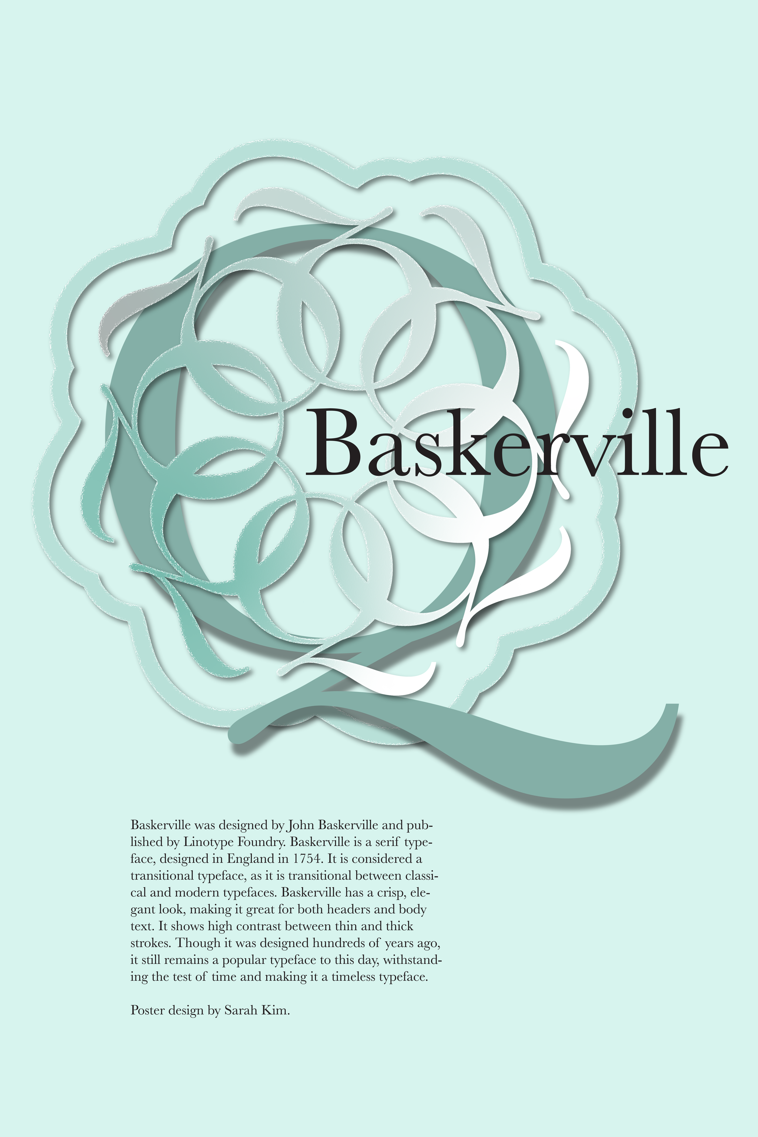 This poster was focused on a specific glyph, and the goal was to create an engaging design, capturing the elegance, timelessness, and essence of Baskerville.